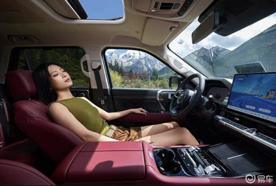 其次,舒适性升级是新车最直观的突破,彻底颠覆了硬派车“糙汉”形象。车内座椅采用Nappa打孔真皮包覆,前排不仅支持加热与通风,主驾还配备3挡8点式按摩功能,长途穿越时能有效缓解疲劳。