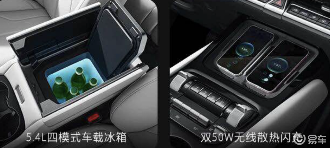 细节设计方面,采用了怀挡式换挡机构,提供了更宽敞的中控空间,配备双50瓦无线充电面板可同时为两部手机快充,中央扶手箱内的5.4升车载冰箱支持-6℃至50℃温控,长途穿越时能随时喝到冰饮或热饮。