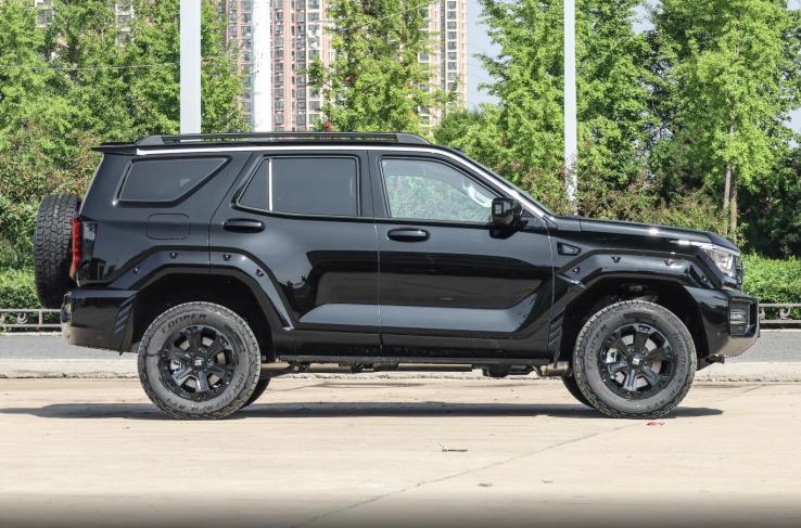 再看车身侧面的设计变化,新车采用了粗犷的轮眉设计,细节加入铆钉,搭配全新的熏黑轮圈,提升了整车的运动氛围。在车身线条轮廓方面,新车采用了向上挑的窗线设计,C柱后方搭配倒梯形侧窗设计,营造出浓郁的力量感。实拍车型配备规格为265/65 R18 114H的锦湖CRUGEN HP71轮胎,作为一款非专业的全地形胎,重度非铺装路面通过性弱于AT轮胎,但在湿地道路行驶时安全性高、静音效果显著,耐磨性也较为优异。尺寸方面,新车长宽高来到了4964x1970x1905mm,轴距2850mm,定位中大型SUV。