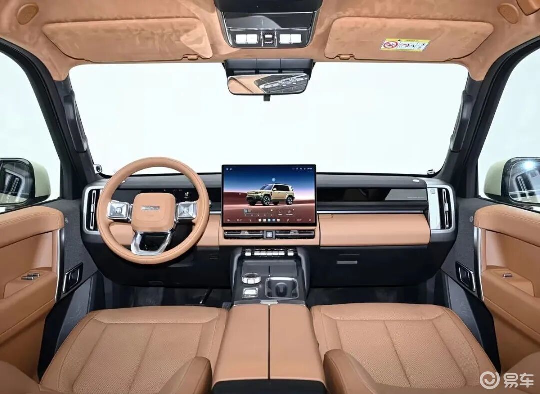 内饰方面,新车整体设计与外观相搭配为硬派的风格,首创星际舷窗双天幕,采用三幅式多功能方向盘+旋钮换挡,中控区域暴露了主要功能的物理按键。配置方面,标配前排手机无线充电、冷暖扶手箱、15扬声器音响,以及方向盘加热、前排座椅电动调节、加热、通风、主驾座椅记忆等功能。