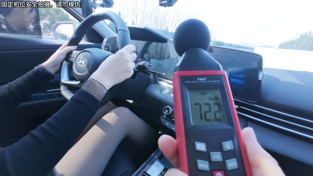 测一下这车的噪音数值吧。现在速度是80km/h,仪表显示大约67分贝。