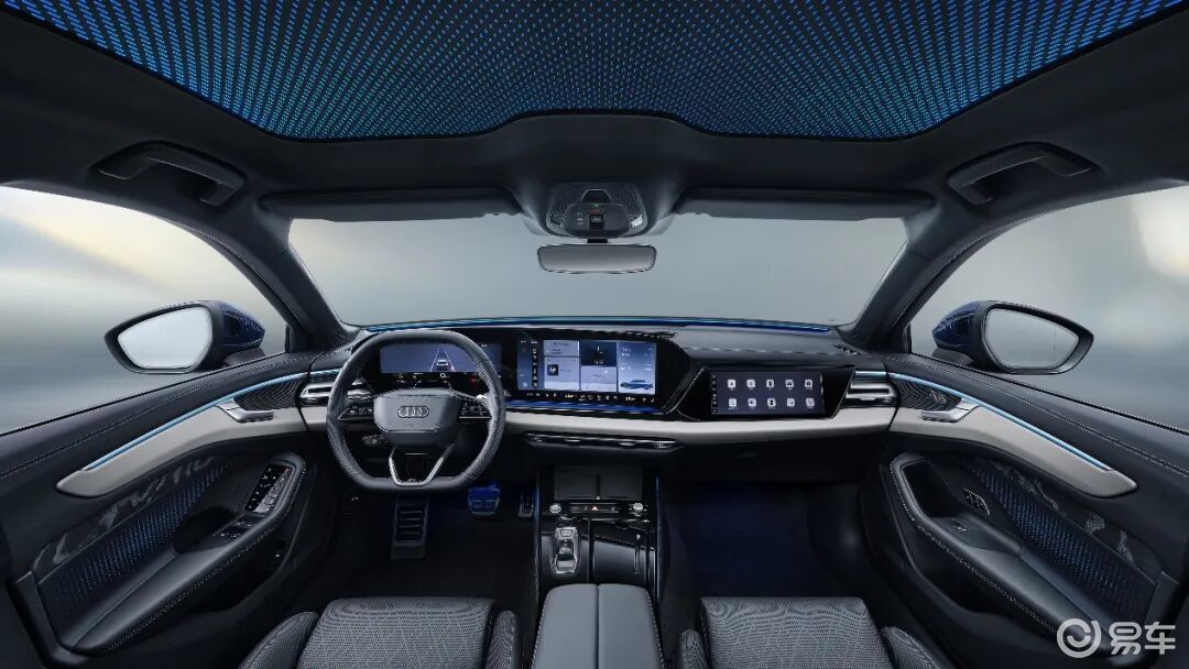 座舱部分的变化同样值得展开。14.5英寸中控屏、10.9英寸副驾屏和11.9英寸液晶仪表,构成了这一代A6L的核心交互框架。围绕这套座舱系统,手机互联、语音控制、5G网络、OTA和手机App远程控制也同步跟进。再结合9分区智能全景天幕、银河星空顶、Bang & Olufsen音响以及针对中国市场开发的奢享座椅和内饰材质,这一代A6L在座舱层面的变化,并不是单纯追求屏幕数量,而是在传统豪华轿车的材质表达之外,把交互、氛围和舒适体验一并纳入新的产品体系。