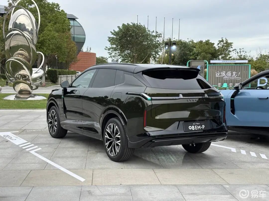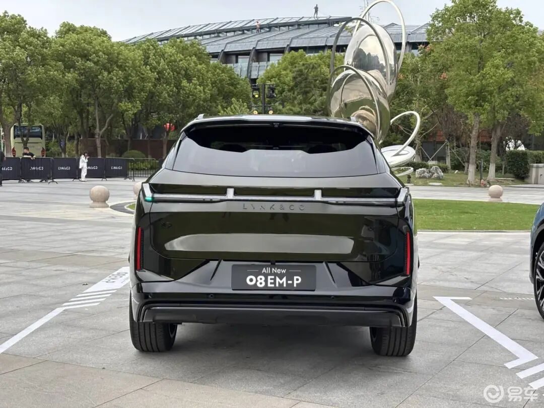 尾部沿用在售领克08标志性的贯穿式尾灯,熏黑的后包围样式非常战斗。新车还新增了晴空蓝、鎏光金的车身配色。