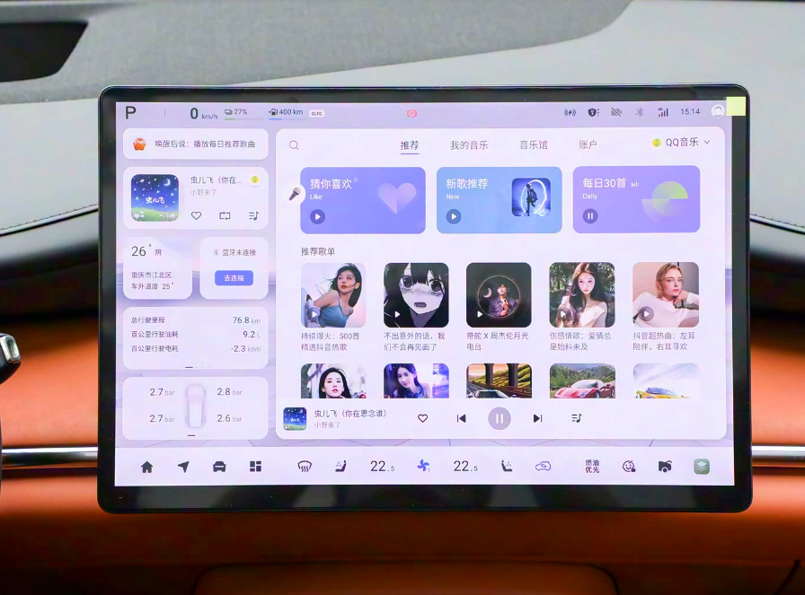 长安启源Q07 215激光旗舰PLUS有着更远的215公里纯电续航表现,底盘方面配备了魔毯智能悬架以及一块副驾屏幕。