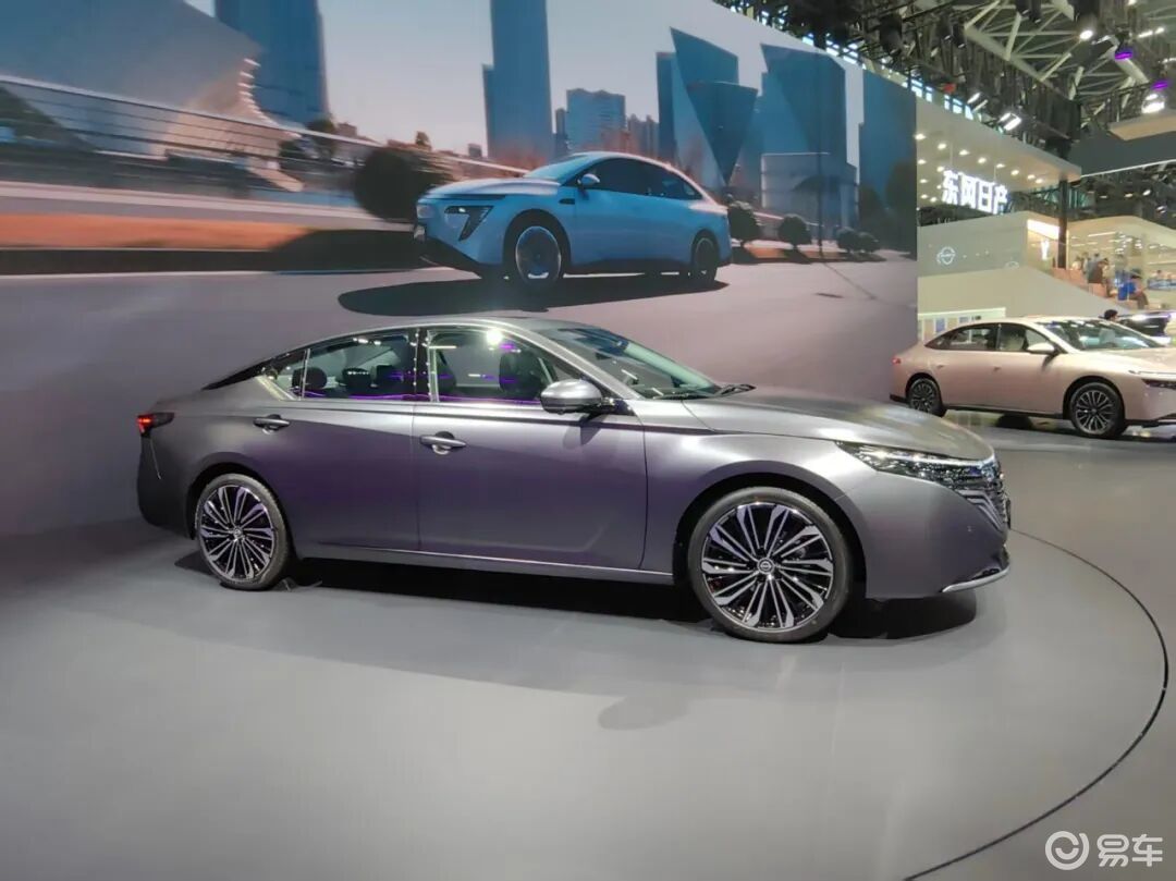 来到车身侧面,侧面以双腰线勾勒出俯冲姿态,溜背式造型和上扬的腰线突显运动感,车身尺寸4920*1850*1447mm,轴距2825mm,相比于现款天籁,新车车身长度增加了14mm。