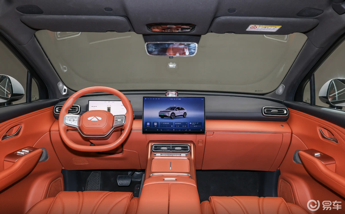 内饰部分并没有太独特的设计,依然是主流新能源汽车的那种简洁设计,怀挡设计释放更多空间,中控屏后方还有一个带灯光效果的高音单元,有一定的豪华感。中控屏的尺寸较大,达到了17.3英寸,分辨率有2.5K,视觉效果还是很不错的。屏幕内置3nm旗舰级座舱芯片,据说性能是高通8295P的好几倍,加上全新的车机系统以及AI大模型,性能和响应速度都有保障,还支持任务魔方、千里传音、哨兵模式等一系列便利功能。